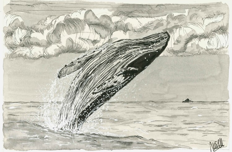 Encre et feutres sur papier gris